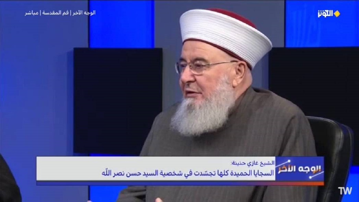 تحدث فضيلة الشيخ غازي حنينة رئيس مجلس الأمناء بتجمع العلماء المسلمين خلال مشاركته في برنامج الوجه الآخر عن "مدرسة نصر الله"