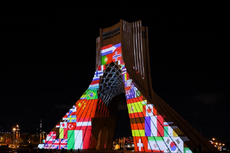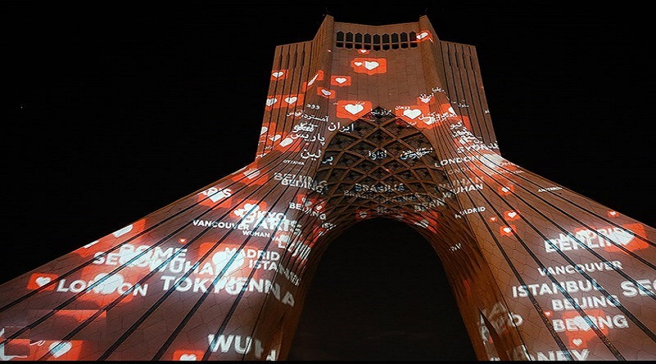ونشر "غلام حسين محمدي"، رئيس مركز الاعلام في بلدية طهران ومستشار عمدة طهران، على صفحته في تويتر، مقطع من فيلم الاضاءة ثلاثية الابعاد على برج الحرية لاعلان التضامن مع جميع الدول التي تكافح كورونا، وكتب " طهران هكذا دائما يقظة وعطوفة".