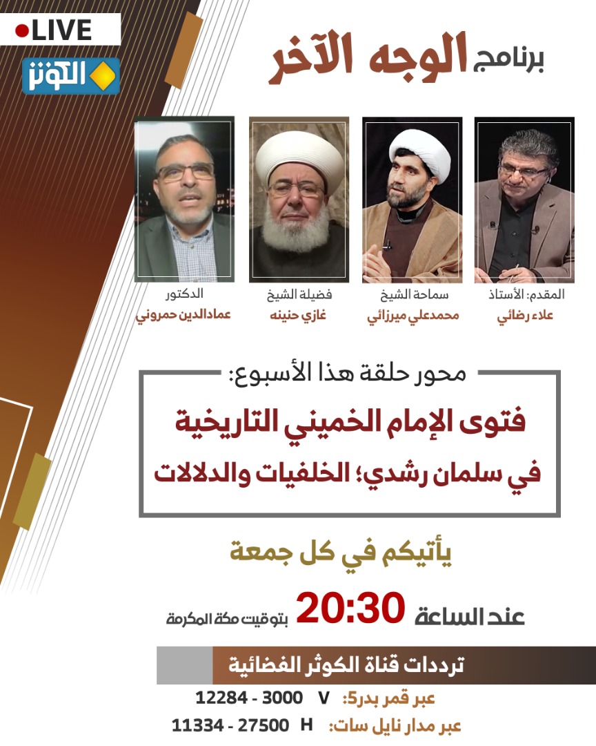 يأتيكم مباشرة في كل جمعة عند الساعة 20:30 بتوقيت مكة المكرمة عبر قناة الكوثر الفضائية.